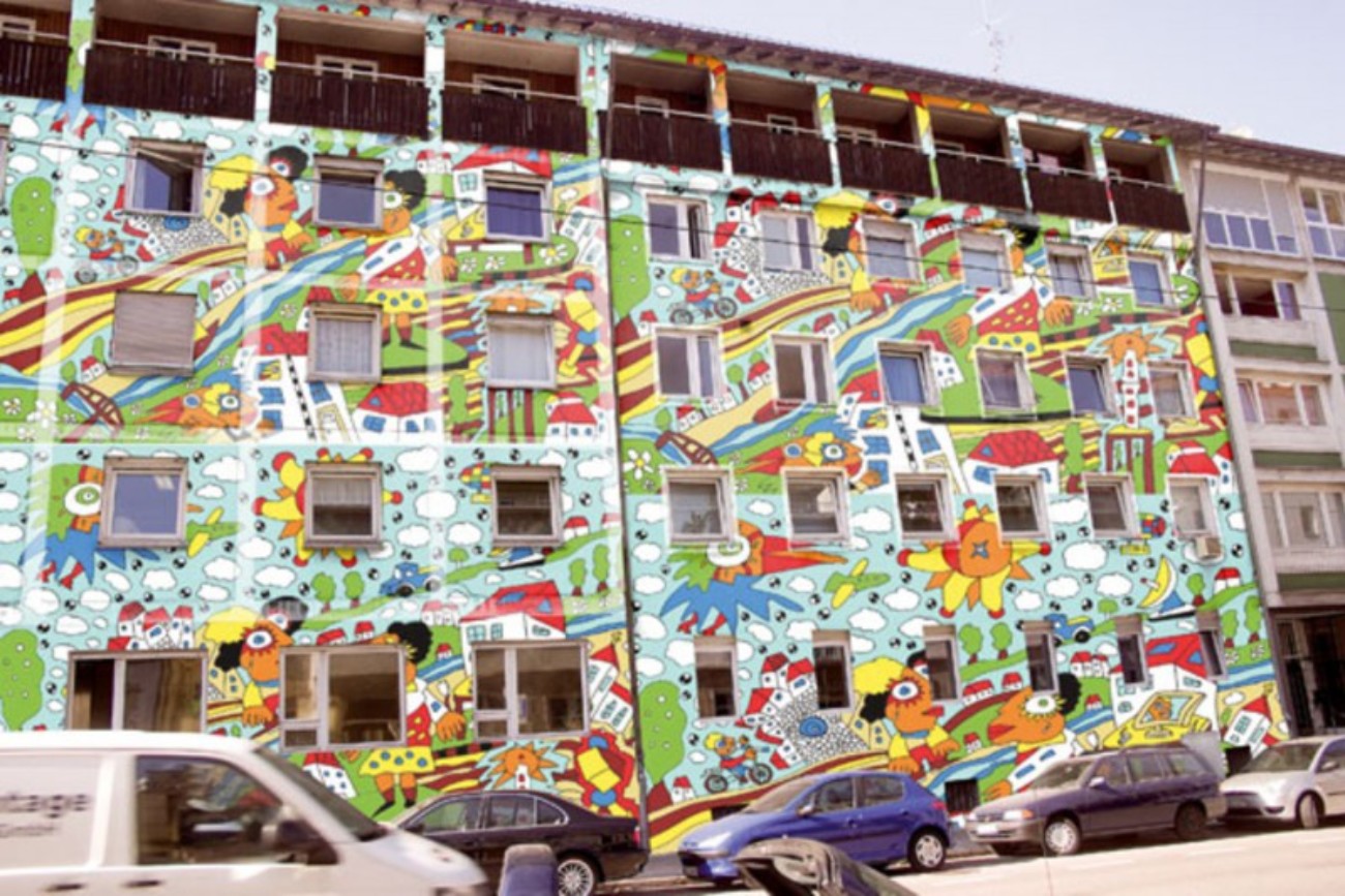 Was dem Künstler die Farbe, ist dem Bauherren die Fassade. Und so verbinden sich Architektur, eine Grundidee und Kunst im öffentlichen Raum zu einem Ort, der den Menschen in ihrem Lebensalltag zugänglich gemacht wird.